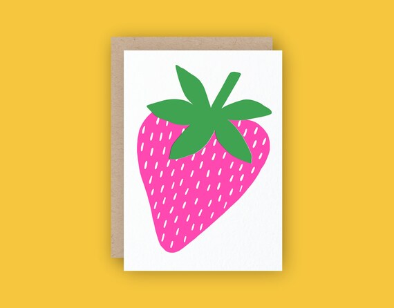 Neon Strawberry Letterpress Blank Greeting Card Etsy