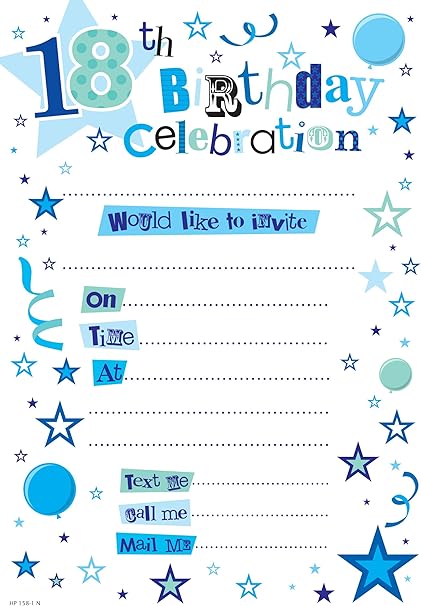 Amazon Com 18th Birthday Party Invitations Blue Boy 2013 Pack Of 20 With Envelopes Simon Elvin Toys Games