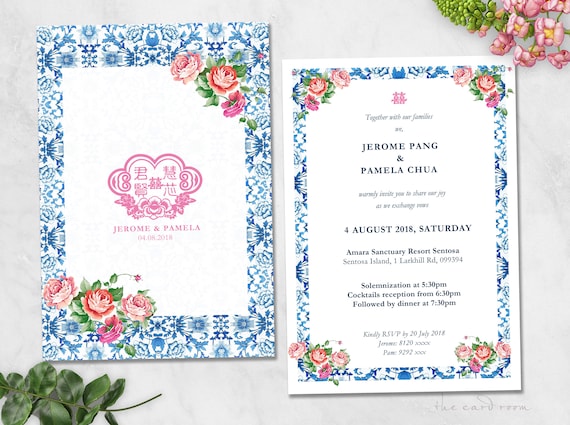 Printable Wedding Invitation Peranakan Florals Blue Etsy