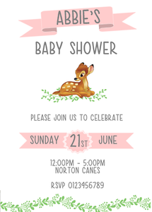 Disney Bambi Baby Shower Invitations Personalised Pink Ebay