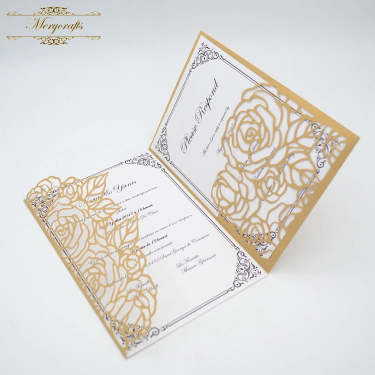 50pc Tri Fold Rose Design Wedding Decoration Laser Cut Pocket Invitation Cards Card Design Card Cardcard Cut Aliexpress