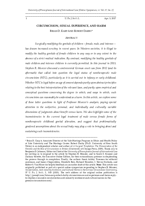 Pdf Circumcision Sexual Experience And Harm Robert Darby Academia Edu