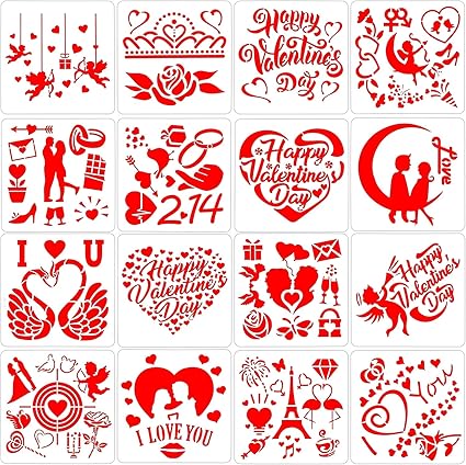 Amazon Com Konsait 16pack Valentine S Day Stencils Reusable Template Stencils For Valentines Painting Gift Envelopes Scrapbooks Crafts Photo Album For Women Card Decoration Valentines Day Party Favor Supplies Toys Games