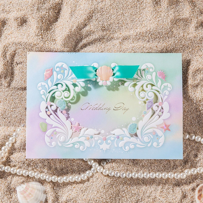 Laser Cut Beach Themed Blue Color Wedding Invitation Card With Ribbon Invitation Card For Wedding Card Decorinvitations And Thank You Cards Aliexpress