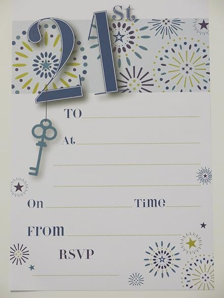 21st Birthday Party Invitations Male Blue Boy Key Design Pack Of 20 Invites Sheets Envelopes Amazon Co Uk Kitchen Home