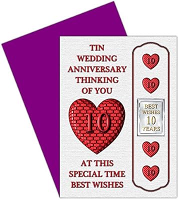 On Your 10th Wedding Anniversary Card With Removable Magnet Gift 10 Years Tin Anniversary For Family Friends Amazon Co Uk Office Products